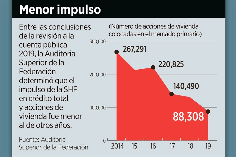 En el ejercicio de 2019, Sociedad Hipotecaria Federal (SHF) no estableció metas de colocación, ni acreditó el número de solicitudes de financiamiento para vivienda, ni detalló la razón por la que no se financió la adquisición.