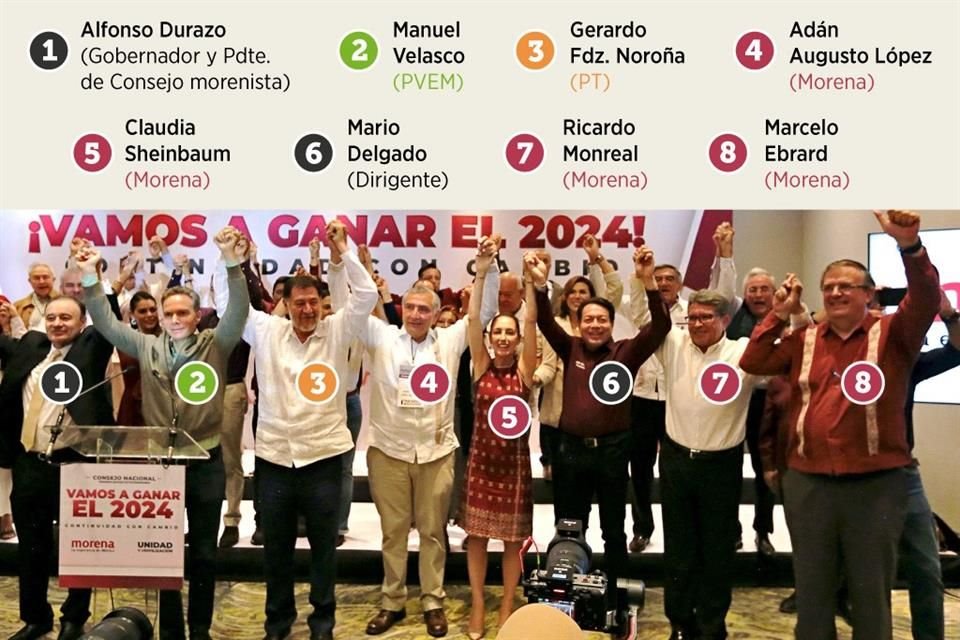 Aspirantes de Morena pactaron reglas de sucesión y acordaron que abanderado saldrá de encuesta, cuyo resultado se dará el 6 de septiembre. Crédito: Oscar Mireles.