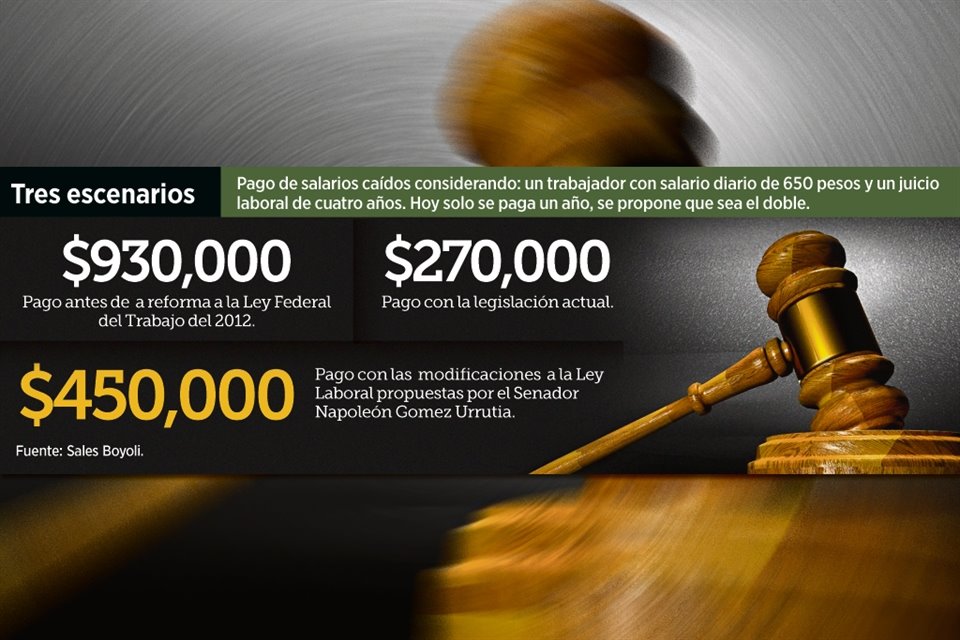 Hasta 450 mil pesos podría pagar el patrón a un empleado de aprobarse la iniciativa que duplica el pago de los salarios caídos en el caso de un juicio laboral.