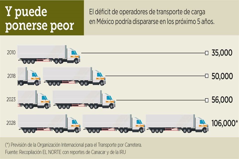 Focos rojos se están encendiendo entre las empresas mexicanas de transporte de carga, pues tienen en promedio el 15 por ciento de su flota de tráileres detenida en sus patios ante la creciente escasez de operadores.