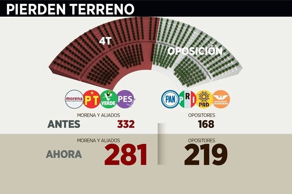 El bloque partidista de la 4T sufrió un fuerte golpe al perder la mayoría calificada en la Cámara de Diputados.