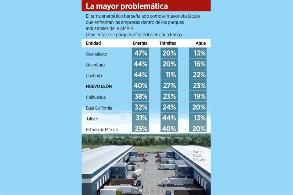 El 91 por ciento de los miembros de la Asociación Mexicana de Parques Industriales Privados (AMPIP) reportó haber tenido alguna afectación relacionada con el suministro de la energía eléctrica, de acuerdo con una encuesta realizada por BBVA Research.