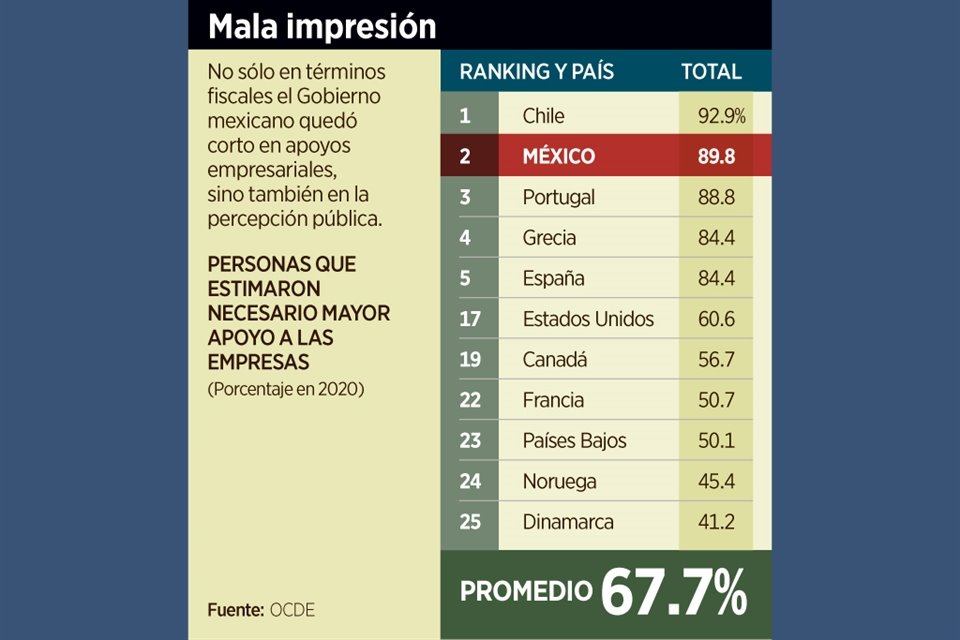 Un 89 por ciento de los mexicanos considera que el Gobierno debería apoyar más a las empresas, de acuerdo con una encuesta realizada por la OCDE.