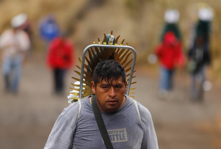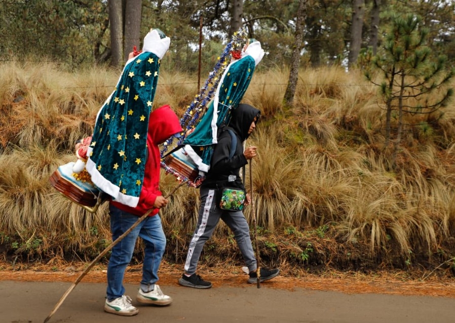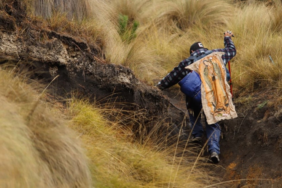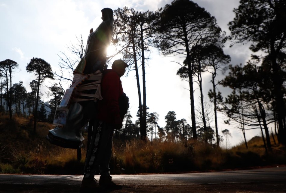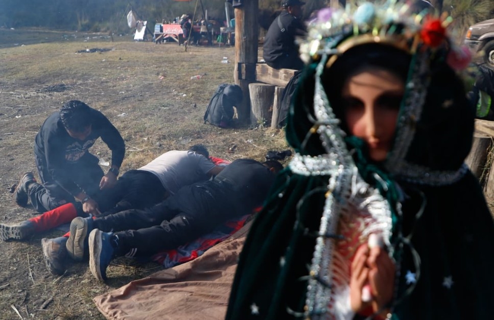Los peregrinos fueron captados la mañana del 9 de diciembre en Paso de Cortés, situado en medio de los volcanes Popocatépetl e Iztaccíhuatl, tras salir de Santiago Xalixintla (Puebla).