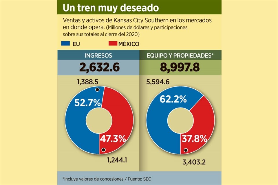 Tras casi un mes de disputas de dos ferroviarias canadienses para hacerse de Kansas City Southern (KCS), ésta se ha inclinado por una oferta de 33 mil 600 millones de dólares de Canada National (CN), que crearía la primera red directa en toda la región del T-MEC, de 35 mil 483 kilómetros.