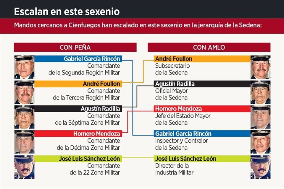 La mano del General Salvador Cienfuegos, Secretario de Defensa en el Gobierno de Enrique Peña y detenido en Los Ángeles bajo cargos criminales de narcotráfico, sigue presente en la actual Administración federal.