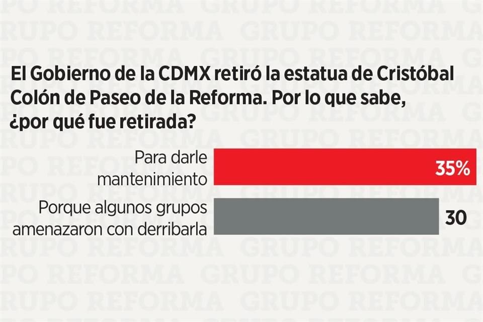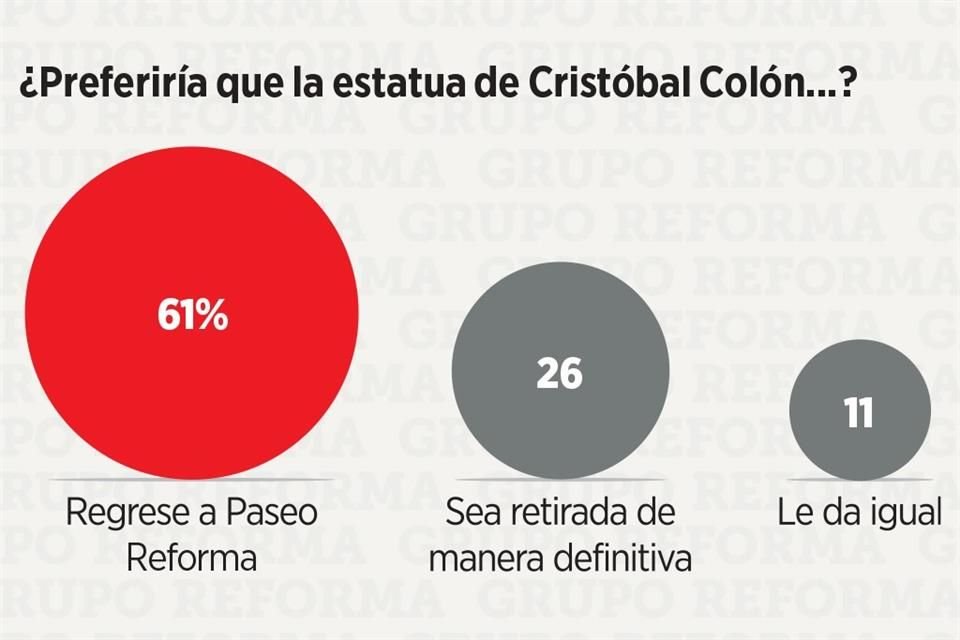 El 61 por ciento de los capitalinos prefiere que la estatua de Cristóbal Colón que fue removida en días pasados regrese a Paseo de la Reforma.