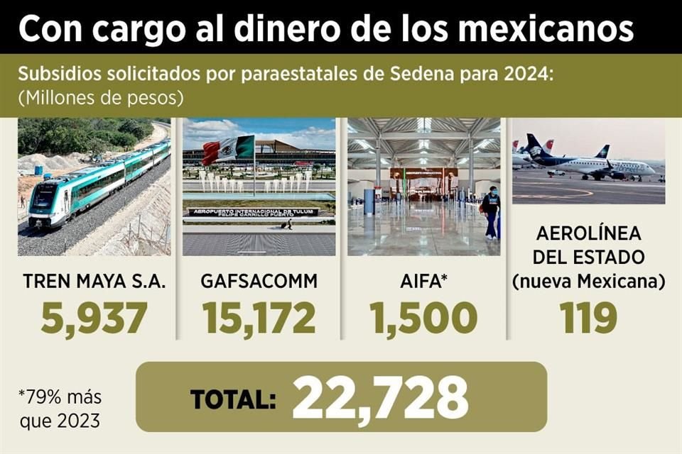 Las empresas paraestatales de Sedena pidieron para 2024 subsidios de operación y salarios que suman 22 mil 728 millones de pesos. Crédito: Especial.