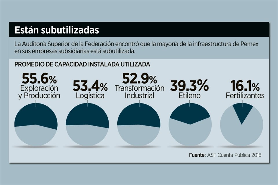 Las empresas subsidiarias de Petróleo Mexicanos (Pemex) como Etileno, Transformación Industrial, Logística, Fertilizantes, así como Exploración y Producción, debilitaron las finanzas de la petrolera durante 2018.