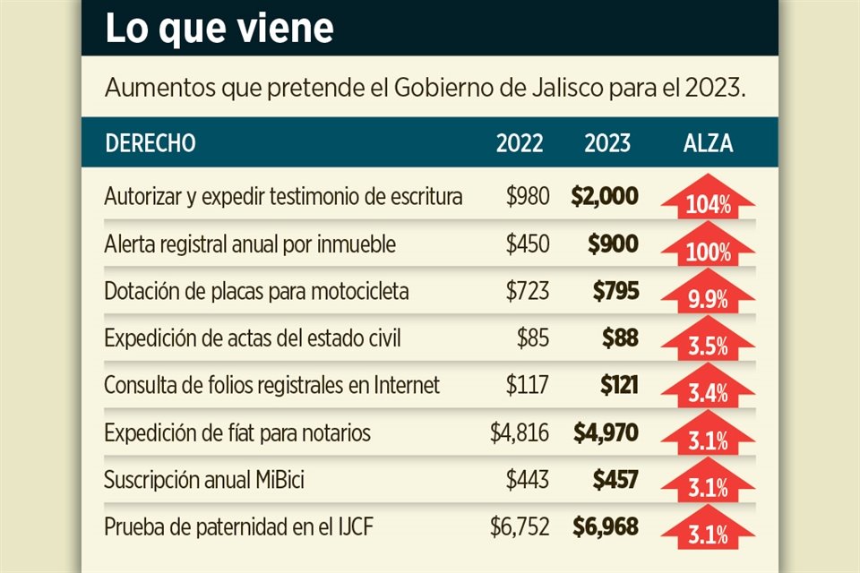 Para el próximo año, el Gobierno de Jalisco pretende recaudar 158 mil 630.4 millones de pesos y, para lograrlo, contempla elevar el costo de servicios y derechos como el refrendo vehicular, licencias de conducir, corralón, así como el Impuesto Sobre Nóminas (ISN).