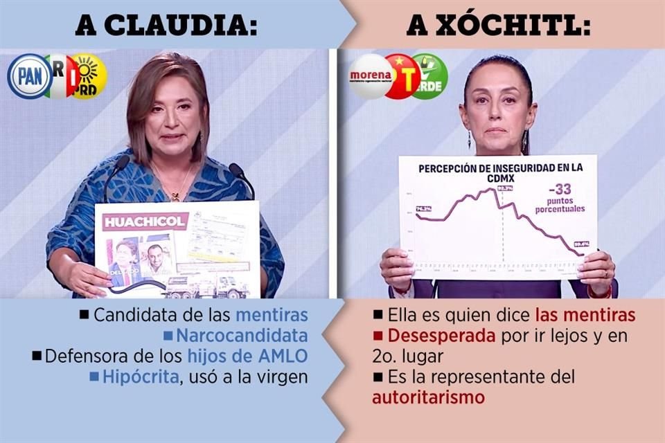 En el último debate entre las candidatas y el candidato a la Presidencia abundaron los ataques por encima de las propuestas para afrontar los principales problemas que vive el País como la violencia, la crisis migratoria y el conflicto por la división de Poderes.
