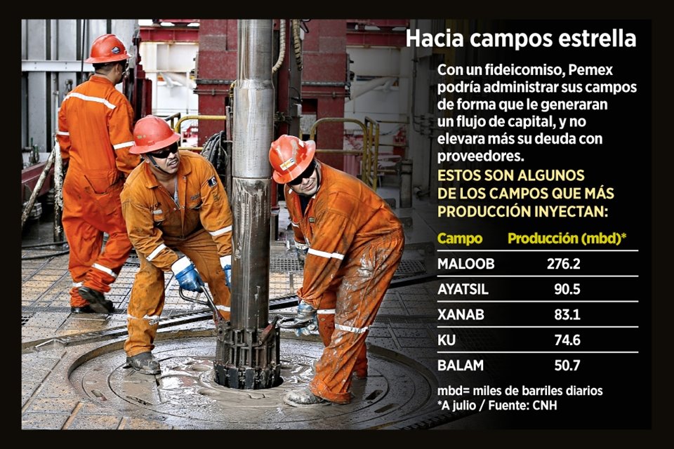 En tiempos de crisis y de desplome de la industria petrolera, expertos proponen a Pemex crear un fideicomiso para financiar sus campos.