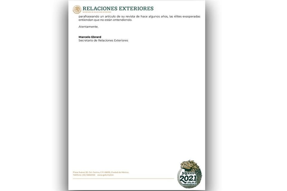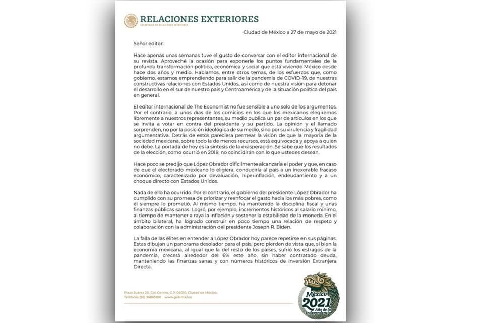 El Canciller Marcelo Ebrard calificó como "la síntesis de la exasperación" la portada de la revista británica The Economist, que muestra una imagen del Presidente Andrés Manuel López Obrador bajo el título de "El falso mesías de México".