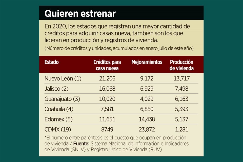 La adquisición de vivienda nueva es la opción preferida entre los solicitantes de un crédito hipotecario, principalmente en los estados que registran la mayor producción de casas a nivel nacional.