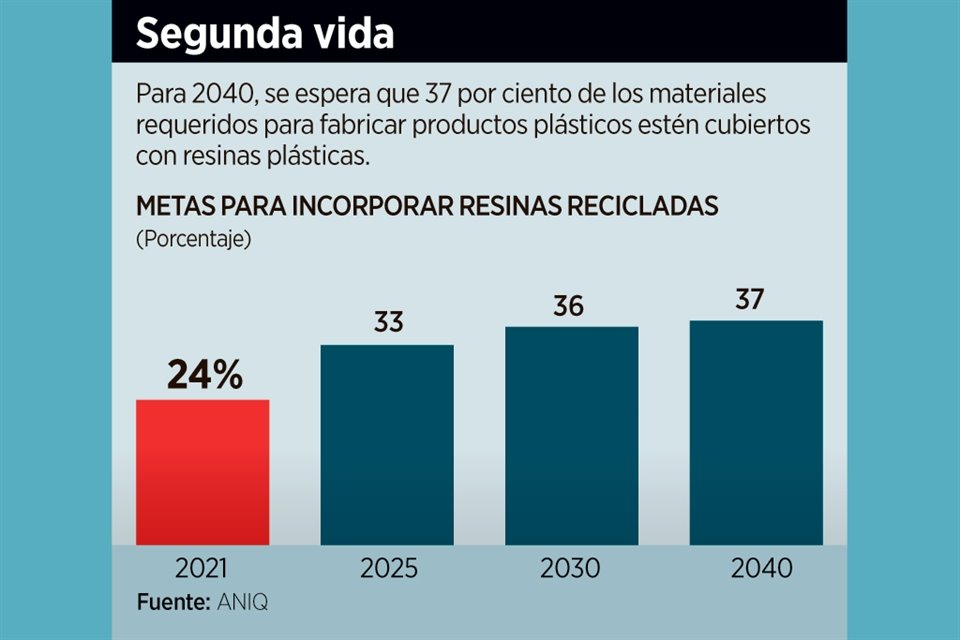 Las resinas recicladas para productos plásticos representarán 33 por ciento de los insumos en el 2025, señala un informe de la Asociación Nacional de la Industria Química (ANIQ).