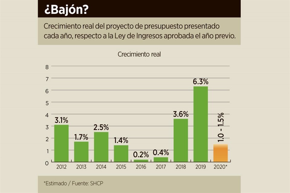 Ante el bajo crecimiento económico estimado para el próximo año, expertos anticipan que el presupuesto federal para el 2020 -cuyo proyecto será presentado mañana domingo- apenas crecerá entre 1.0 y 1.5 por ciento, en términos reales.