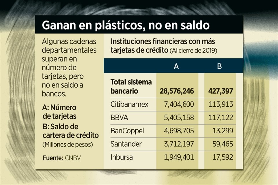 La colocación de créditos de las principales cadenas departamentales en México ha crecido tanto, que algunas empresas, como Liverpool, ya rebasan en número de tarjetas a la mayoría de los bancos, incluidos los más grandes.