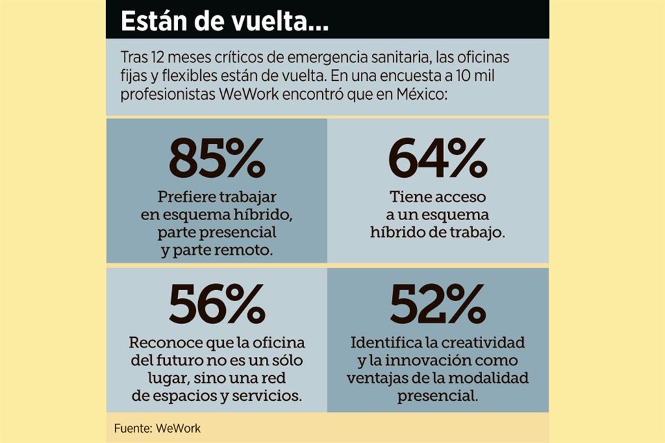 Nuevo León es líder nacional en reactivación de actividades presenciales, lo que ha llevado a WeWork a tener una ocupación del 66 por ciento en sus oficinas y con perspectiva de ampliar los espacios disponibles en los próximos tres a seis meses, aseguró Álvaro Villar López, director de la compañía para México.