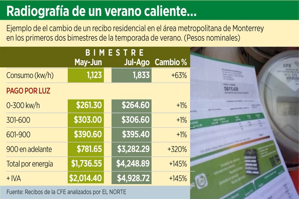 Los cobros de luz están quemando los bolsillos de los hogares regiomontanos.