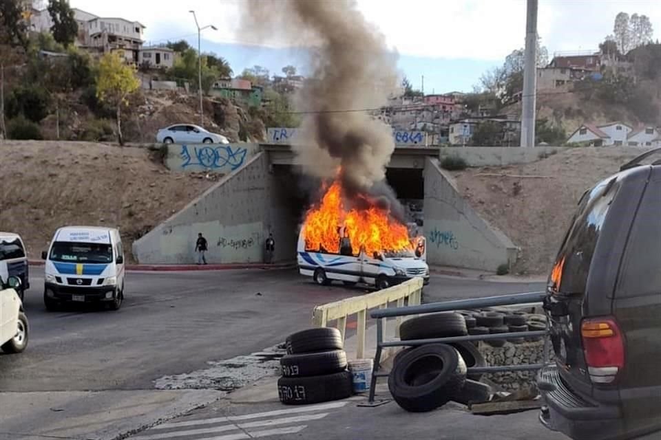 Al menos 19 unidades de transporte público y tráileres fueron incendiados la noche del viernes en los cinco Municipios de Baja California por hombres armados, algunos de ellos detenidos, informó la Gobernadora Marina Ávila.