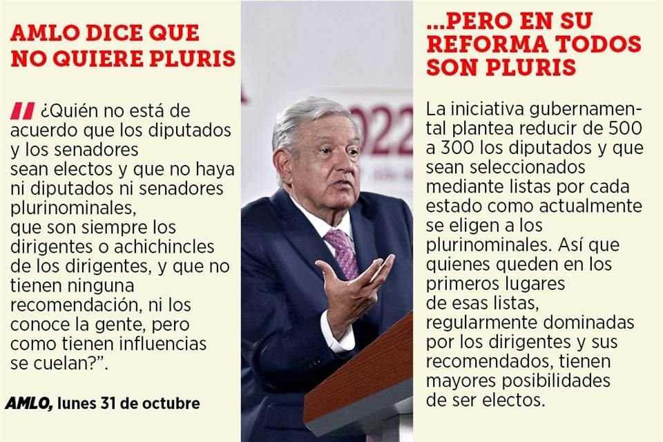 El Gobierno y su partido, Morena, anunciaron la desaparición de los plurinominales. Pero la iniciativa electoral oficial promueve la elección de diputados y senadores por listas votadas en cada estado del País en un formato parecido al que actualmente se utiliza para elegir a los pluris.