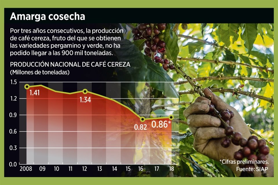 En 10 años, la producción de café cereza en México cayó 39 por ciento.