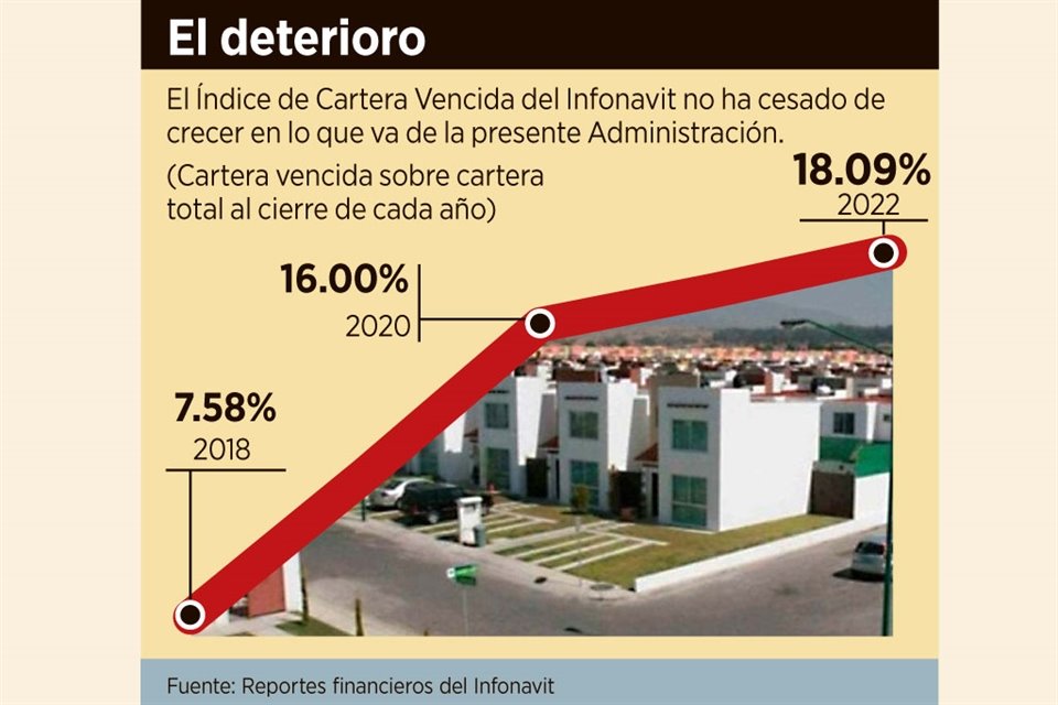Al cierre del 2022, el Índice de Cartera Vencida (ICV) del Infonavit se ubicó en 18.09 por ciento, el más alto de los primeros cuatro años completos de la Cuarta Transformación (4T).