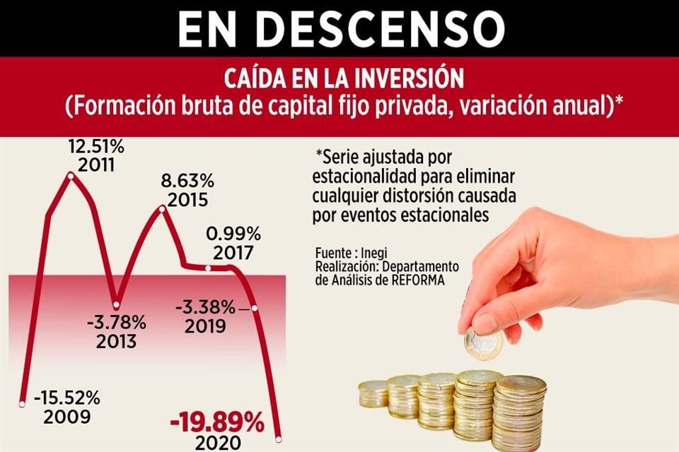 La inversión privada en el País se hundió 19.89 por ciento durante 2020, su mayor desplome en 25 años.