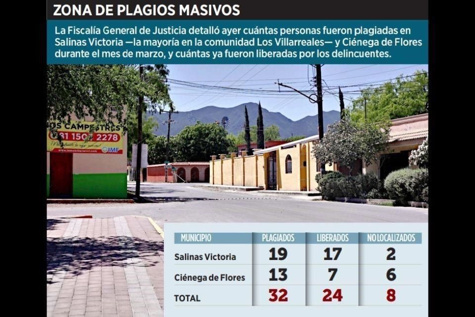 Los 14 integrantes de una familia que fueron plagiados la semana pasada en la comunidad de Los Villarreales, en Salinas Victoria, regresaron a su casa en al menos un vehículo proporcionado por los delincuentes, reveló ayer Pedro Arce, encargado del Despacho de la Fiscalía General de Justicia.