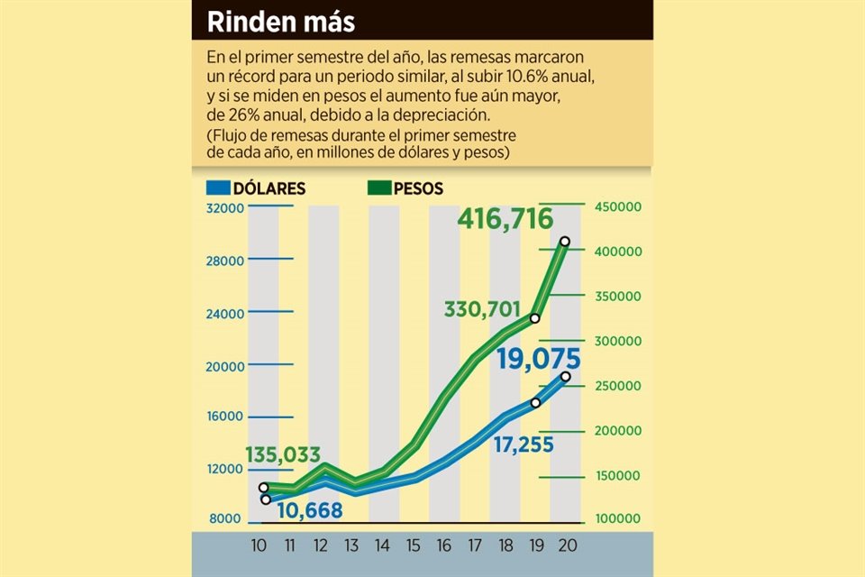 A pesar de la pandemia que ha minado en general la actividad económica en Estados Unidos y ha elevado la tasa de desempleo de los paisanos en ese país, las remesas familiares enviadas a México siguen en aumento.