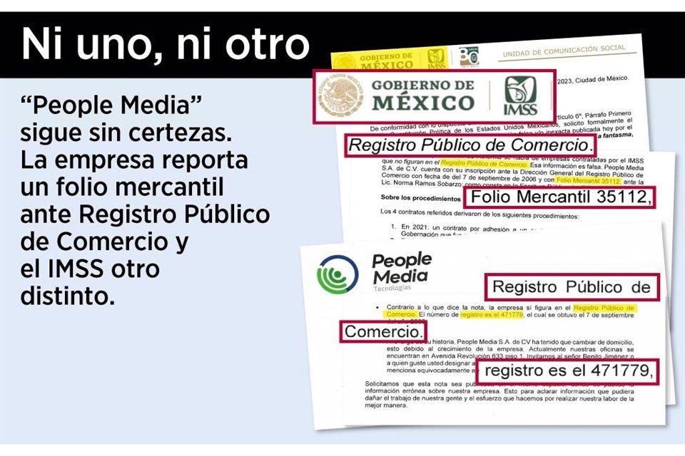 Pese a que IMSS defendió a People Media, los registros  mercantiles no coinciden.