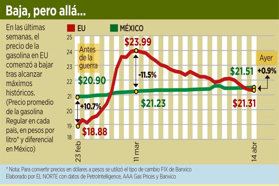 A pesar de los grandes descuentos de impuestos a la gasolina que está dictando la Secretaría de Hacienda, este combustible ya es más caro en México que en Estados Unidos.
