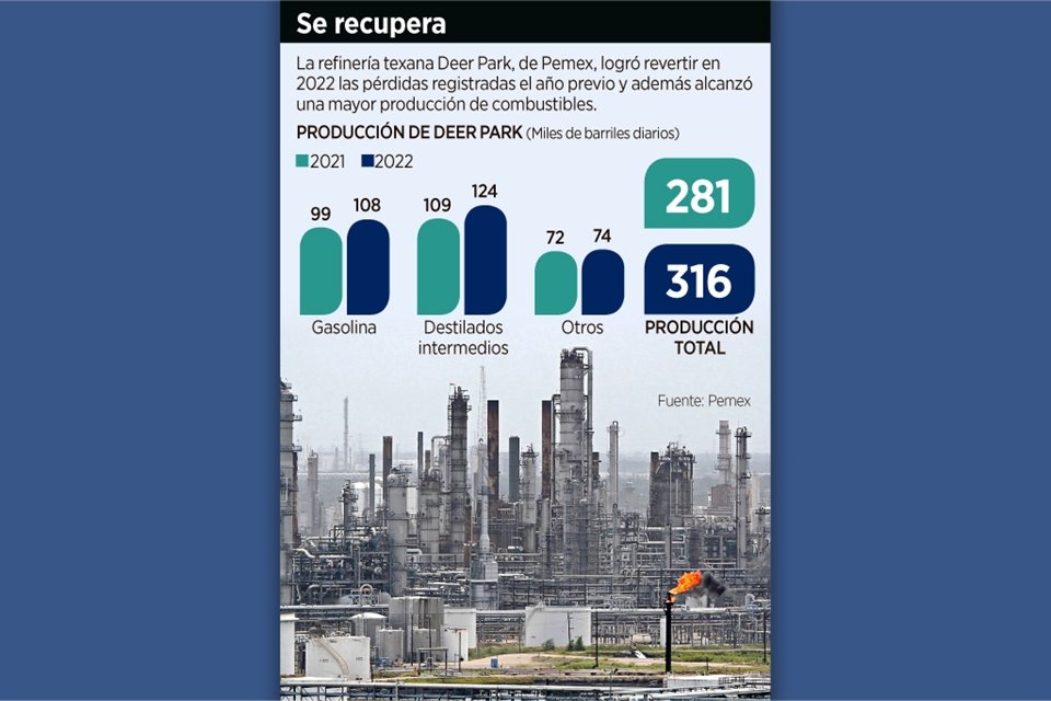La refinería texana Deer Park, que Pemex adquirió en su totalidad en enero de 2021, revirtió las pérdidas en 2022.