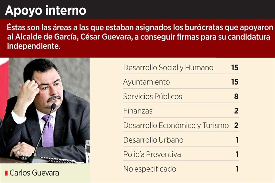 El Tribunal Electoral del Estado ordenó abrir un procedimiento especial sancionador contra 45 empleados del Municipio de García que presuntamente, en horario laboral, recabaron firmas de apoyo para la candidatura del independiente Carlos Guevara, quien ganó la reelección el 6 de junio.