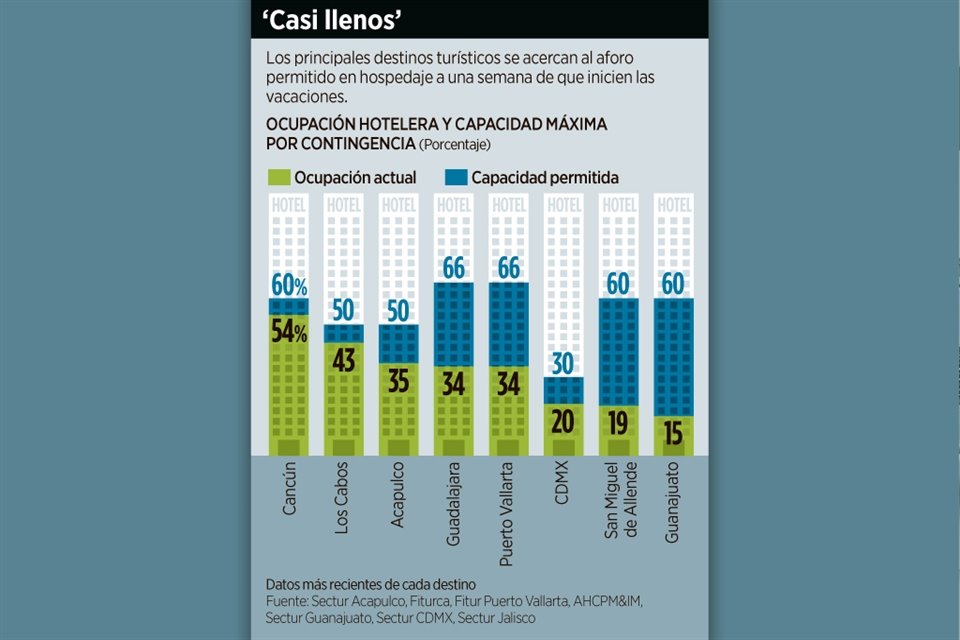 En Semana Santa, los principales destinos turísticos tendrán una ocupación casi total respecto al aforo permitido por el semáforo epidemiológico de cada Estado, consideraron empresarios.