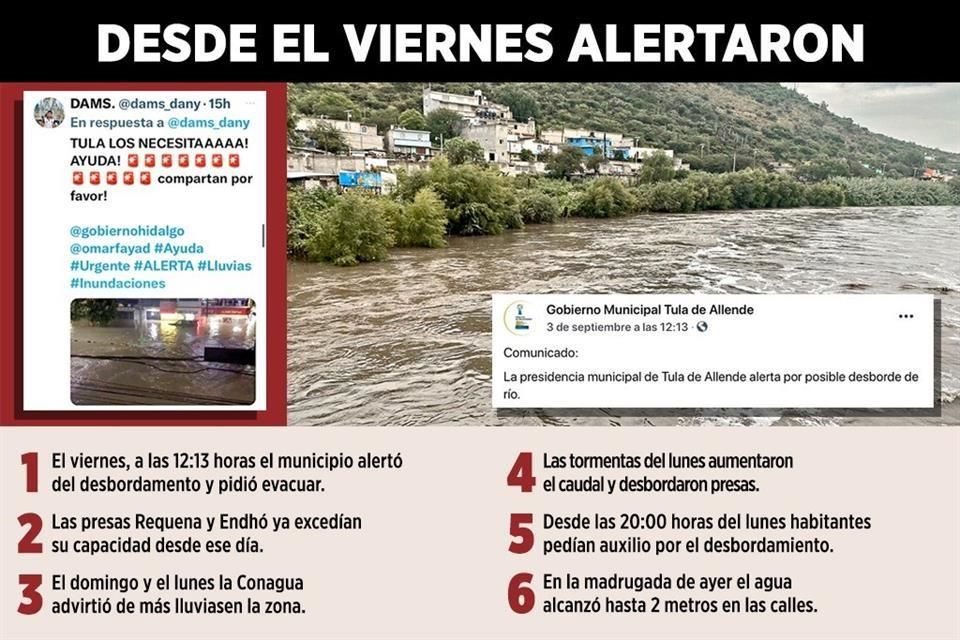 El viernes 3, al mediodía, la Alcaldía de Tula advirtió de las lluvias y un inminente desbordamiento del río.