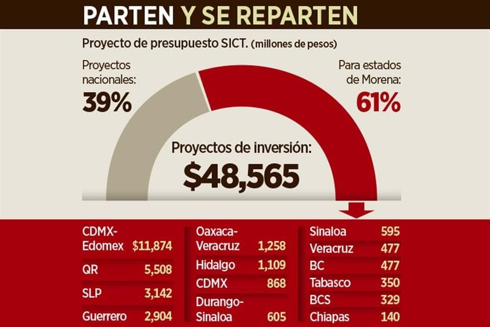 En su plan de inversión para el próximo año, la Secretaría de Infraestructura, Comunicaciones y Transportes (SICT) beneficia más a estados gobernados por Morena y, también, al Estado de México, entidad que ese partido busca ganar en 2023.