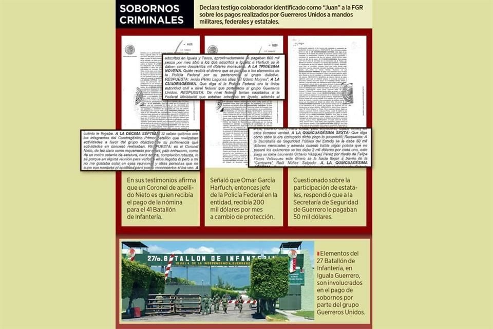 "Juan", un testigo clave en las indagaciones sobre la desaparición de los 43 normalistas de Ayotzinapa, declaró ante la Fiscalía General de la República (FGR) que el actual titular de la seguridad capitalina, Omar García Harfuch, recibía mensualmente 200 mil dólares del cártel Guerreros Unidos.
