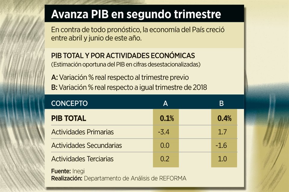 De los tres grandes sectores en que se agrupa la economía, el de servicios fue el único que creció durante el segundo trimestre de 2019 y lo hizo suficiente para que el Producto Interno Bruto (PIB) lograra crecer.
