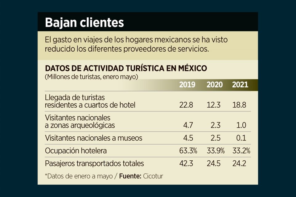 El gasto en paquetes turísticos de los hogares mexicanos disminuyó 74.1 por ciento de 2018 a 2020, a consecuencia de la pandemia, según la Encuesta Nacional de Ingresos y Gastos de los Hogares (ENIGH 2021).