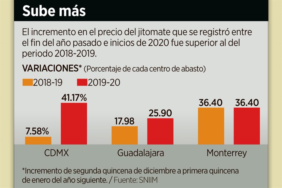 En el último mes, el kilo de jitomate saladette en la Ciudad de México aumentó 41 por ciento.