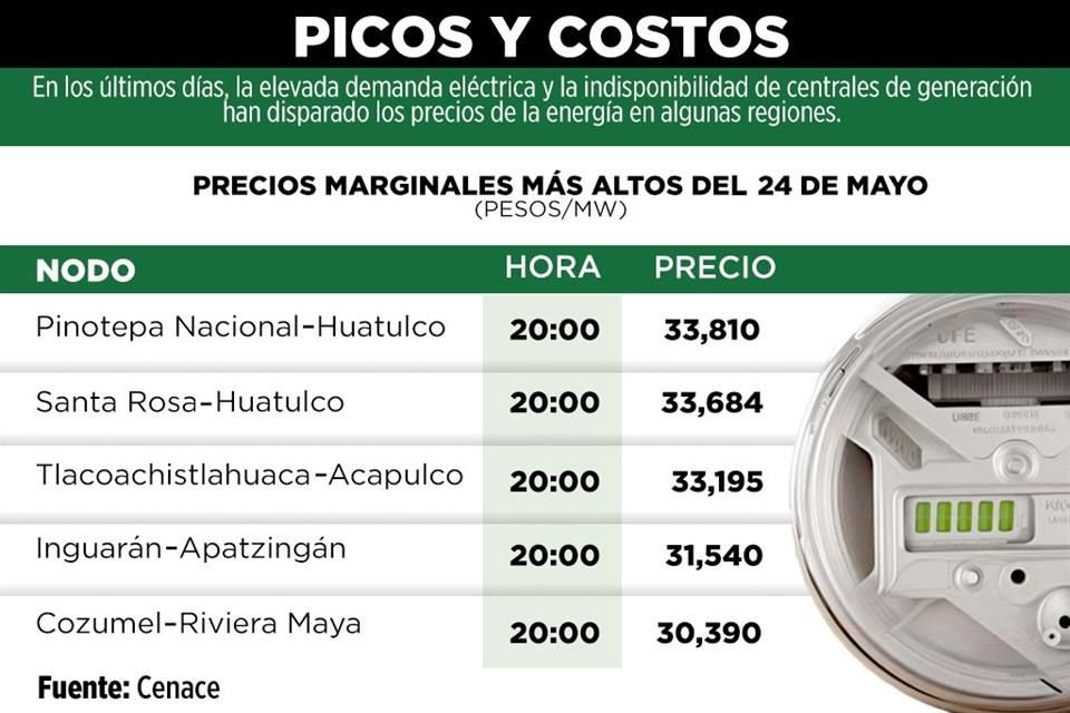 La elevada demanda de energía de las últimas semanas ha disparado los precios marginales locales (PML), que es el costo que registra un nodo determinado del Sistema Eléctrico Nacional, los cuales han alcanzado máximos que superan los 30 mil pesos por megawatt-hora.