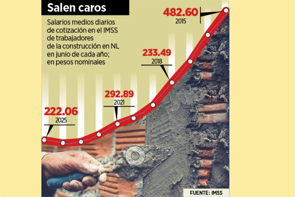 En medio de un déficit de trabajadores de la construcción en Nuevo León, la mano de obra de este sector se encareció 11.3% anual en la Entidad en junio, de acuerdo con datos del IMSS.