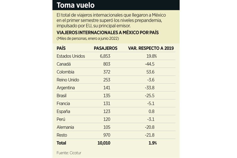 México muestra signos de recuperación en llegada de turistas aéreos procedentes de otros países.