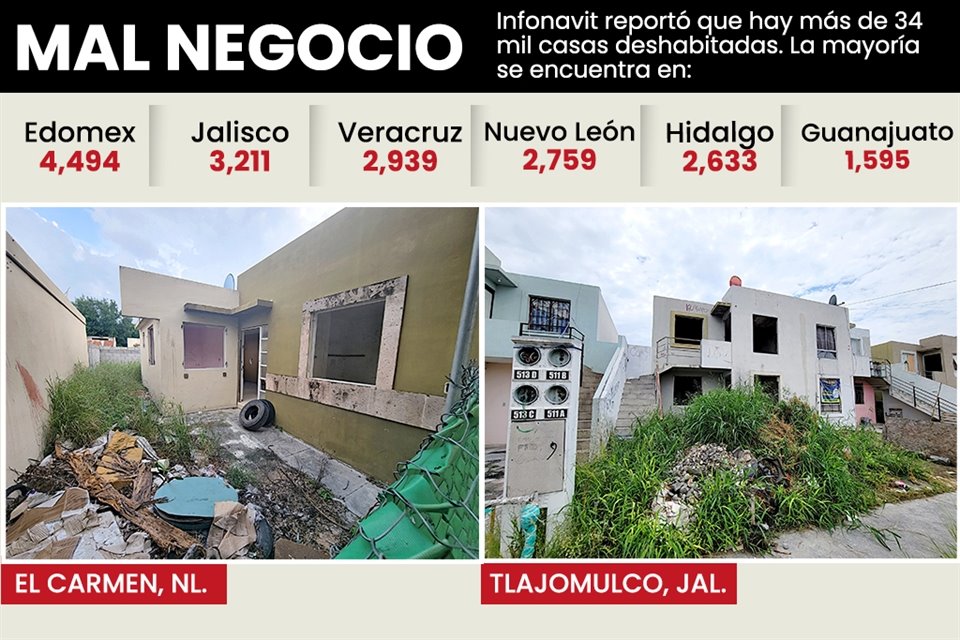 En un año, el número de casas deshabitadas se disparó en un 188 por ciento, reconoció el Instituto del Fondo Nacional de la Vivienda para los Trabajadores (Infonavit).