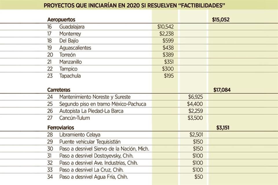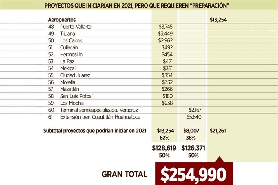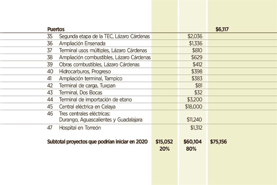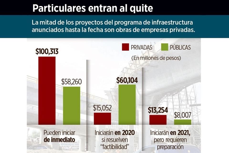 La mitad de la inversión que se anunciará mañana en el plan de infraestructura del Gobierno corresponde a proyectos de empresas privadas, revela un análisis de las 61 obras que detalla un documento presentado el pasado 12 de noviembre en una reunión entre funcionarios, legisladores y empresarios con el Presidente Andrés Manuel López Obrador.