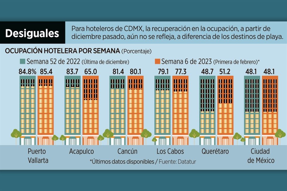 Los hoteleros de la Ciudad de México aún no logran recuperar las tarifas previas a la pandemia, por lo que la expectativa es que este año "sea el bueno".