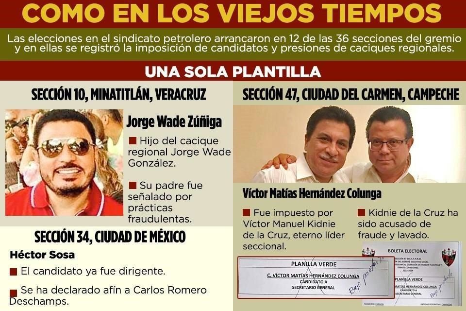 La elección del sindicato petrolero arrancó con el dominio de viejos aliados de Carlos Romero Deschamps, ex Secretario General de ese gremio y acusado, entre otras cosas, por enriquecimiento ilícito, depósitos y operaciones sin que se justifique el origen y destino del dinero, y de tender una red de corrupción y complicidades en esa organización y en Pemex.