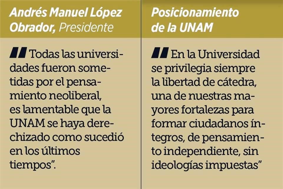 Mientras en la mañanera de ayer el Presidente Andrés Manuel López Obrador arremetió de nuevo contra la UNAM, a la que acusó de haberse derechizado, la Universidad le respondió unas horas después reivindicando su pluralidad.