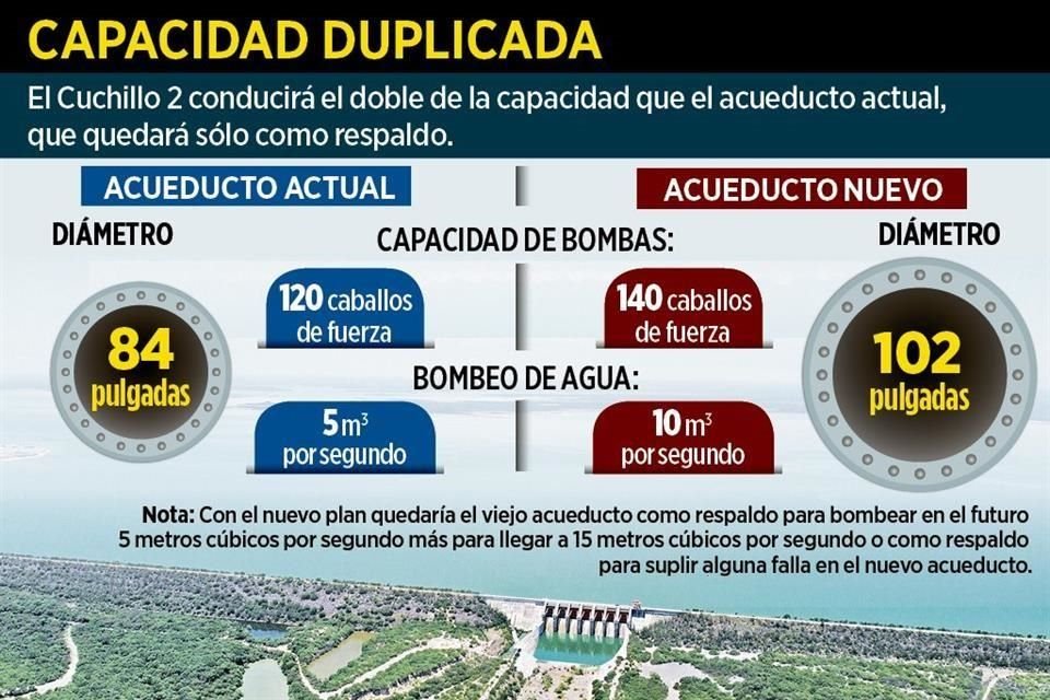 El Acueducto El Cuchillo 2 será una obra extraordinaria por la derrama económica para Nuevo León y el crecimiento de entre 20 y 25 por ciento en empleos que traerá en la industria de la construcción, pero existe el riesgo de que no haya los tubos de acero suficientes para concretar el proyecto en el plazo anunciado de ocho meses, advirtió ayer la Cámara Mexicana de la Industria de la Construcción (CMIC) en el Estado.